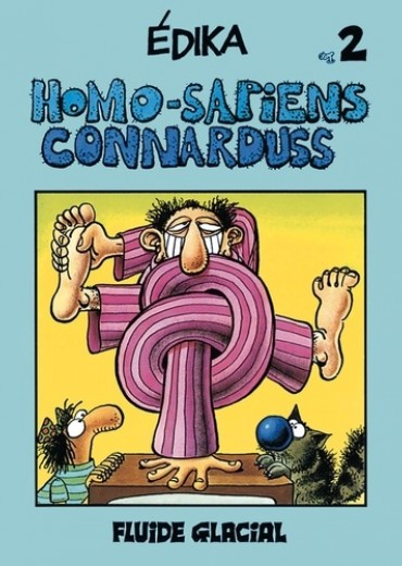Homo-sapiens Connarduss est le deuxième album d'EDIKA, le plus fou des auteurs de FLUIDE GLACIAL. Le titre de l'ouvrage, un peu intellectuel certes, nous prouve que ce que les philosophes et les biologistes soupçonnaient déjà fortement, est une réalité : l'homo-sapiens connarduss existe, EDIKA l'a rencontré. Et il nous en fait la démonstration par l'absurde dans chacun des six récits qui composent ce recueil. A noter dans cet album, une évolution dans l'oeuvre de l'auteur. S'il est toujours obsédé par les bonnes soeurs, il l'est déjà moins par les cuvettes de W.C. Mais il poursuit toujours sa quête angoissée de la nature profonde de l'âme humaine. C'est Harold Lloyd revu par Tex Avery avec une petite touche d'Heidegger. Cocktail explosif à manipuler avec précautions.