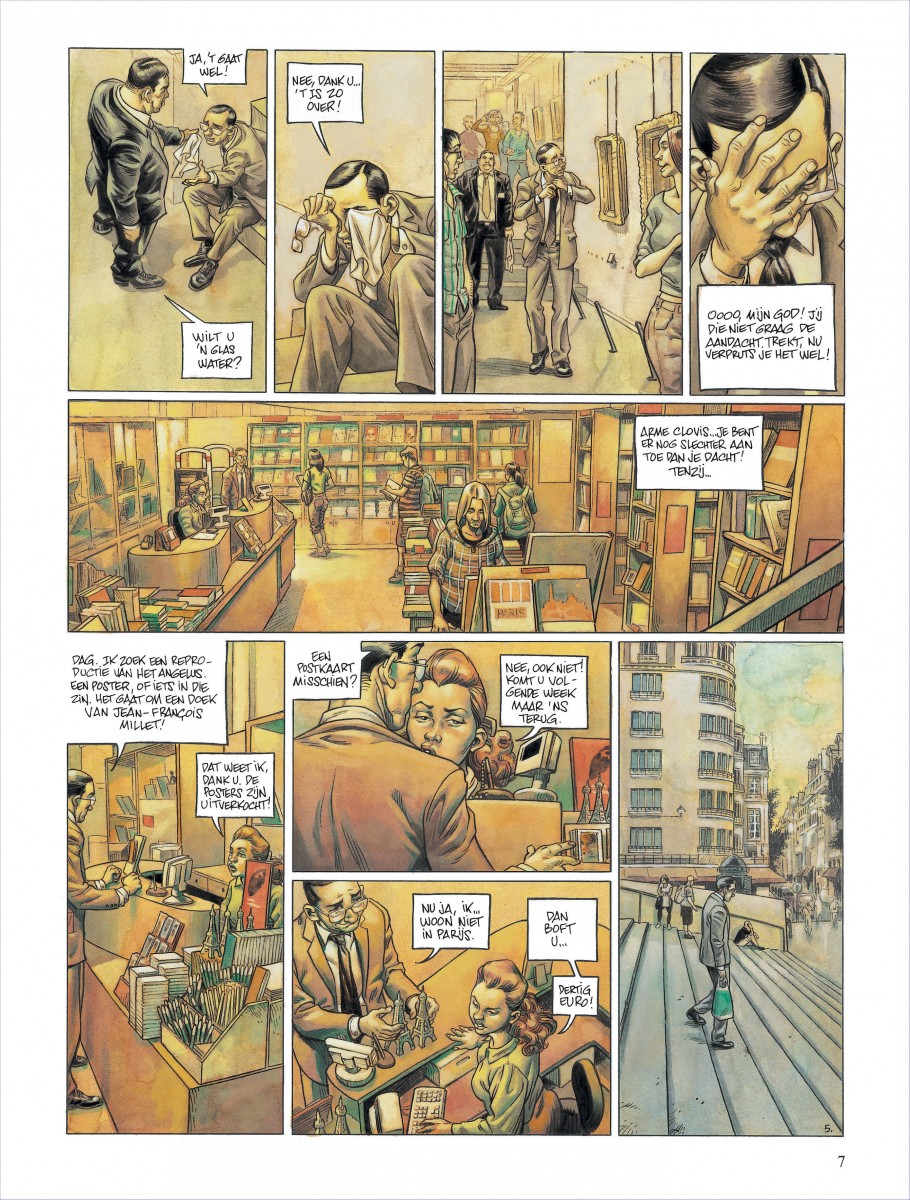 Vanwaar komt die plotse passie van de zielenpoot Clovis voor het Angelus van Millet? Waarom fascineert de obsessie van Dalí voor datzelfde doek deze kleurloze vertegenwoordiger? Zelf heeft hij er alvast geen benul van. Maar de heftige emoties die het schilderij bij hem losmaakt, drijven hem om op zoek te gaan naar wat er achter het doek schuilt. Ook al moet hij daarvoor zijn eigen leven helemaal overhoop gooien.