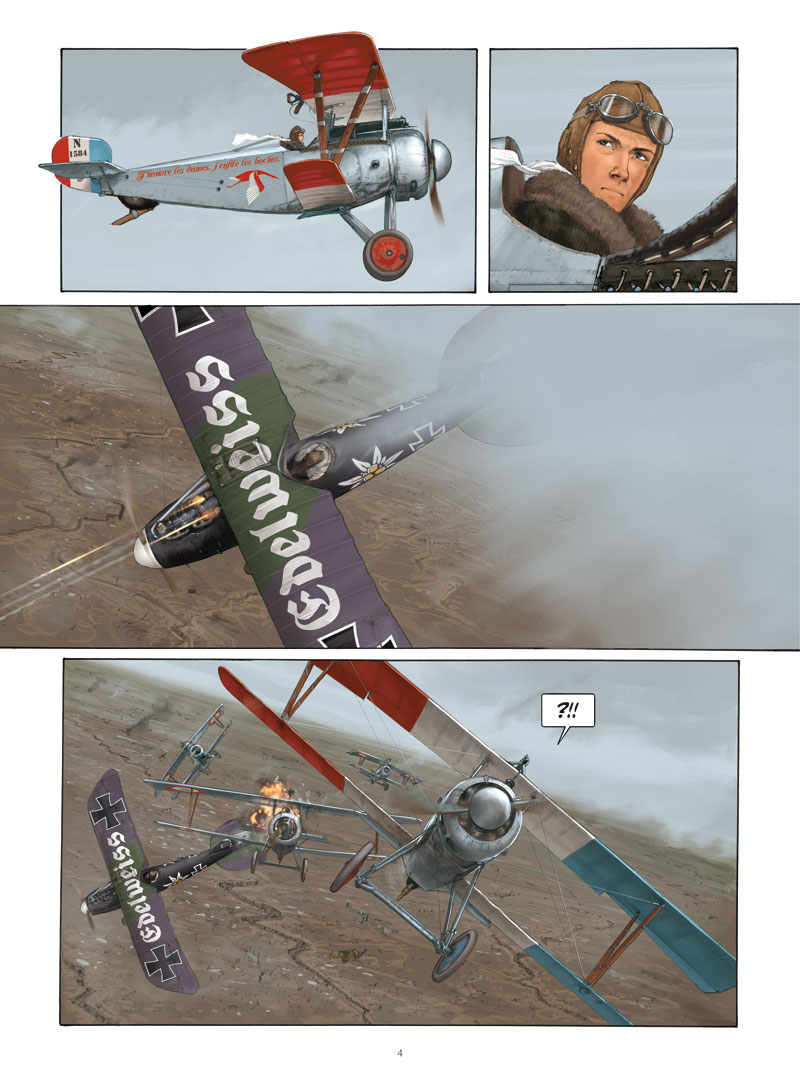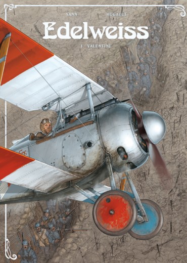 1917: boven de loopgraven van de slagvelden in Noord-Frankrijk en Vlaanderen, waar wanhopige fransozen en gedesillusioneerde punthelmen elkaar in de modder afslachten, creëren Franse en Duitse vliegers iets geheel nieuws. Ze vechten boven de linies genadeloze duels in de lucht uit, elke dag weer. En telkens is er maar één uitkomst: de ene piloot overleeft het, de andere is dood. Op een dag verschijnt er aan de hemel een Duits toestel, een Albatros, een dubbeldekker met een fraaie edelweiss op de bovenste vleugel. De piloot met de edelweiss, zoals hij direct al genoemd wordt, zaait dood en verderf in het Ooievaareskader, het elite-eskader van de piepjonge Franse luchtmacht. Waarom schrikt de onverschrokken toppiloot Henri Castillac, door iedereen erkend als een van de besten in het luchtgevecht, wanneer de piloot met de edelweiss zich in de strijd mengt? Heeft het misschien iets te maken met het akelige geheim dat Henri en zijn broer Alphonse met elkaar delen? En waarom is Alphonse, net als zijn broer een eersteklas piloot, de luchtmacht uit gegooid? En trouwens, wat is er nu eigenlijk jaren eerder gebeurd bij de Alma-brug in Parijs, tijdens die spectaculaire overstromingen van de Seine in januari 1910? Tekenaar Romain Hugault en scenarist Yann zetten na De Nachtuil hun succesvolle samenwerking voort. Edelweiss is een reeks van drie delen.