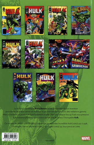 Comme si Hulk n'avait pas suffisamment de problèmes, le voilà embarqué dans la lutte contre Onslaught ! Le Professeur Xavier et Magnéto ont fusionné et forment une entité terrifiante et surpuissante, au point que tous les héros pourraient bien devoir se sacrifier pour l'arrêter. Et lorsque Hulk se retrouvera l'un des derniers sur Terre, souffrira-t-il du complexe du survivant selon vous ? Quand Panini Comics a repris la licence Marvel en France, en 1997, le formidable et long séjour de Peter David n'était toujours pas terminé. La moitié des épisodes recueillis ici n'ont pas été réédités depuis cette époque, à l'exception de ceux concernés par l'évènement Onslaught.