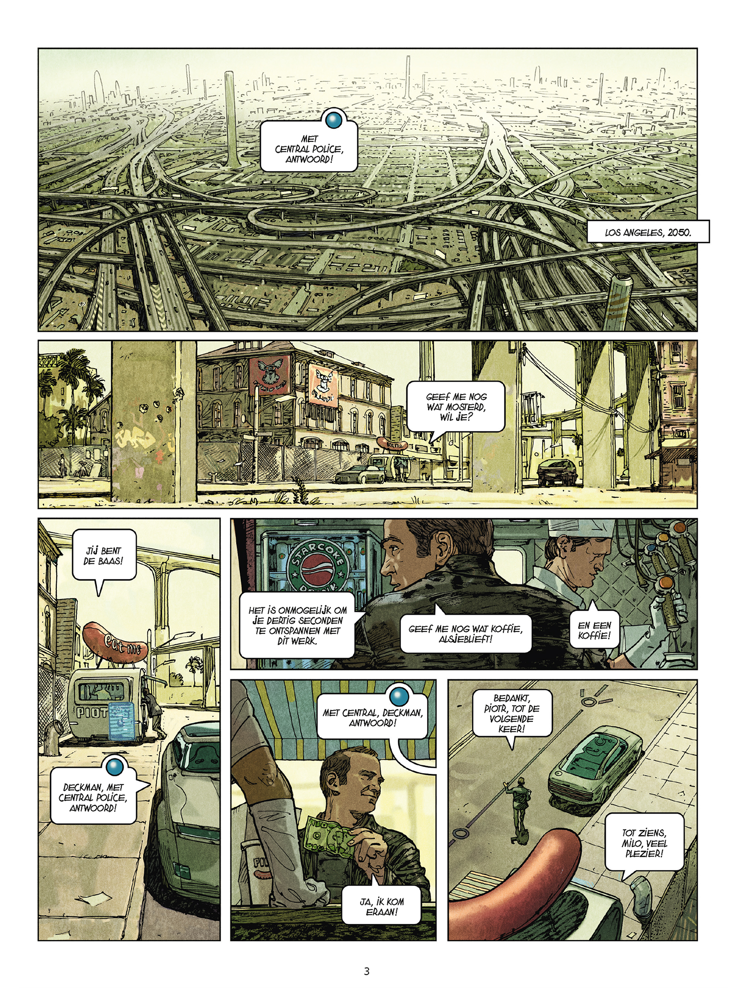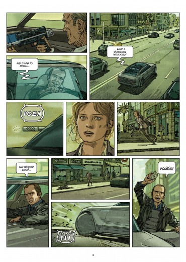 Heel wat veelbelovende albums blijven onvertaald op de plank staan. Deze Identiteitsstoornis verscheen oorspronkelijk als de Franstalige trilogie Milo (2007-2011). Het is een futuristische politiethriller die zich situeert in Los Angeles in 2030. Met deze vertaling komt het echte 2030 echter wat te dichtbij — denk maar eens aan het design van de auto’s bijvoorbeeld — en plots bevinden we ons dus in 2050! Het moet wel geloofwaardige sciencefiction blijven natuurlijk.