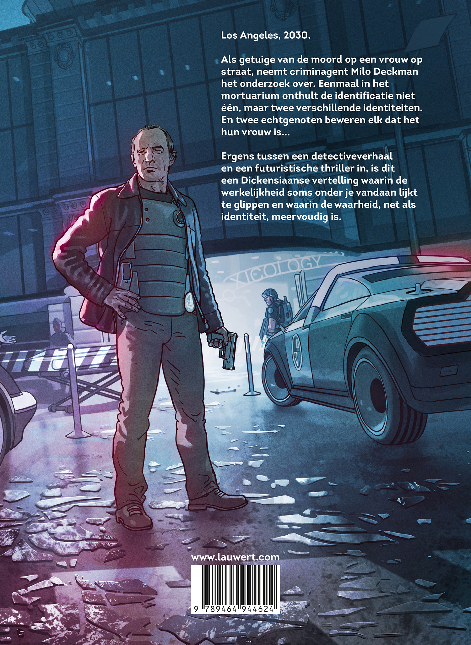 Criminagent Milo Deckman is getuige van een moord op een vrouw. De identificatie in het mortuarium zorgt voor een verrassing. Het rechteroog zegt Flora Nesbitt, vrouw van professor en chemisch onderzoeker Jan Nesbitt, terwijl het linkeroog beweert dat het om Amélie Cinil, vrouw van tandchirurg Camille Cinil, gaat. Alle twee de heren beweren dat het hun vrouw is... Een echtgenote dus met op zijn minst een dubbelleven. Meneer Nesbitt lijkt nog het minst te treuren. Als hij zijn ontdekking maar kan verkopen aan drugsbaas Ramos. Synthetische drugs, met deze formule kan hij schatrijk worden. Hallo, in 2050? Wij hebben wel de tv-serie Breaking Bad gezien en mogen dus kenners genoemd worden. Crystal meth maken wij in ons bad! En wat met die gevaarlijke synthetische drug fentanyl bijvoorbeeld? Toch ook kunstmatig geproduceerd in een lab! Lauwert Uitgeverij had dit album toch beter wat vroeger vertaald.