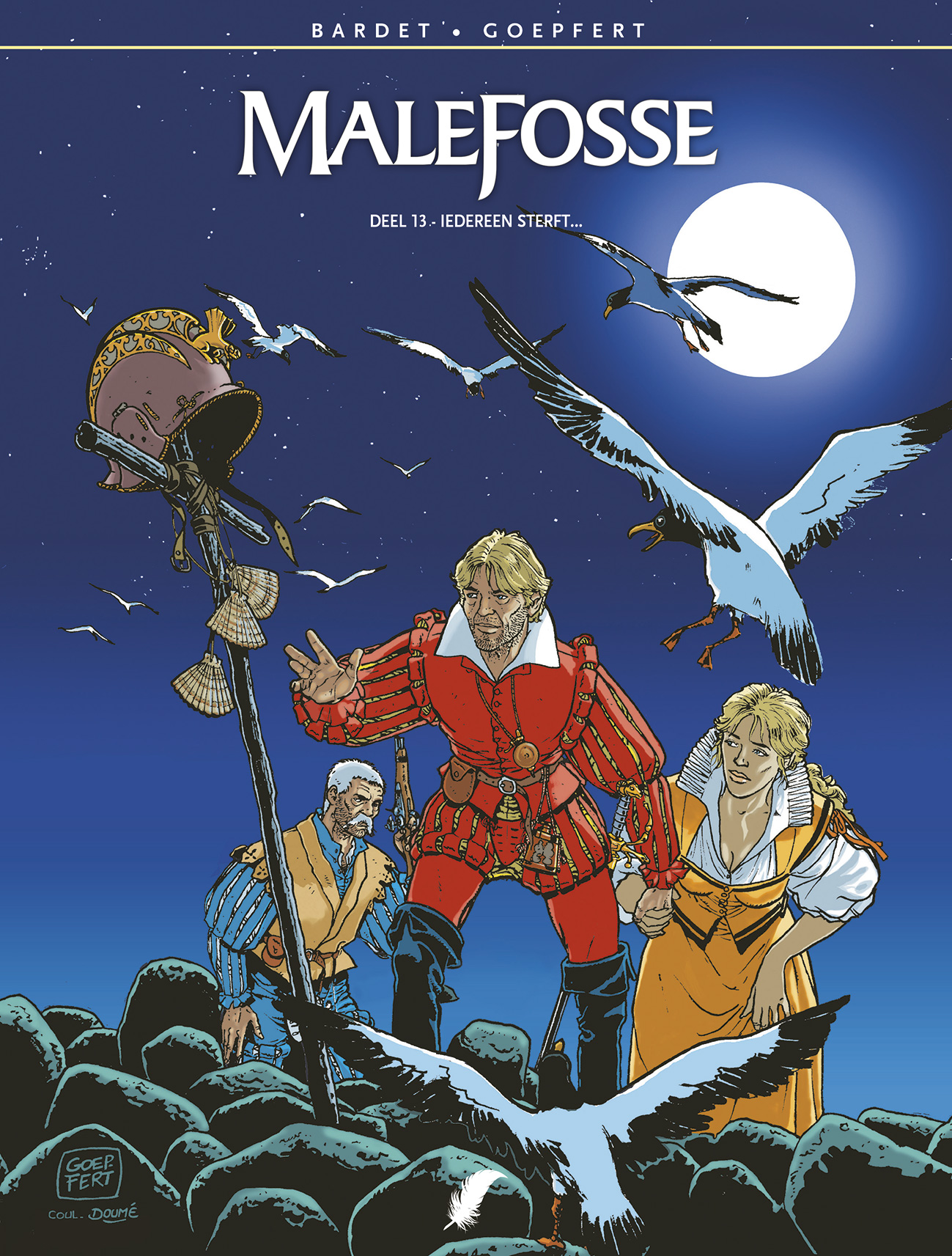Korte inhoud Lente van 1593... Hendrik van Navarra moet zich klaarmaken voor de ‘grote sprong’. Hij moet zich, als protestant in hart en nieren, bekeren tot het katholicisme als hij de ware koning van Frankrijk wil worden en godsdienst - vrede wil stichten. Het hele volk is de oorlog moe en probeert hem ertoe aan te zetten. Omdat alles verbonden is, kan deze dwalende koning, die nog steeds is getrouwd met koningin Margot, dus niet huwen met de arglistige Gabrielle d’Estrées, op wie hij smoorverliefd is. Wie wil er, trouwens, een koning zonder erfgenaam? Het leven van de Navarrees liep nog nooit zoveel gevaar. Onverzettelijke vijanden liggen op de loer, zelfs in zijn eigen kamp, en willen zijn lange mars naar de troon in de weg staan.. Scenarist Daniel Bardet ( Frankrijk ° 1943 - *2022 ) is vooral gekend om zijn historische kennis en dit voel je ook in zijn strips: De Meestersteenhouwer De Mof Dokter Monge Malefosse - Systematische heruitgave met nieuwe vertaling en lettering - De legendarische reeks Malefosse eindelijk in een uniforme uitgave, met – vanaf deel 8 – nooit eerder vertaalde delen - 26 delen lang schreef de onlangs overleden Daniel Bardet het scenario voor deze reeks - De term ‘karakterkop’ is speciaal uitgevonden om de tekeningen van François Dermaut te typeren, wat een schitterend werk - De reeks van Daniel Bardet en François Dermaut liep uiteindelijk van 1983 tot 2016. Meer dan drie decennia Malefosse, dat wil wat zeggen!