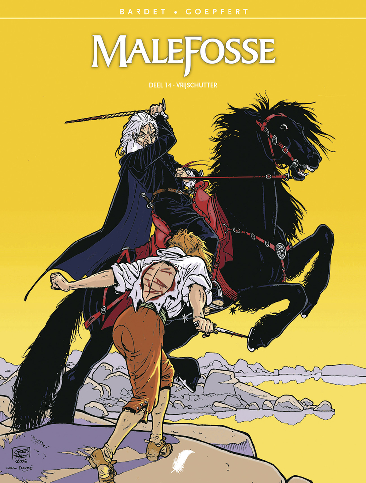 Verwacht 22/03/2024 Korte inhoud Lente van 1593... Hendrik van Navarra maakt zich klaar voor de “grote sprong”. Hij, een protestant in hart en nieren, moet zich bekeren tot het katholicisme als hij de ware koning van Frankrijk wil worden en godsdienstvrede wil stichten. Het hele volk is de oorlog moe en probeert hem ertoe aan te zetten. Omdat alles verbonden is, kan deze dwalende koning, die nog steeds is getrouwd met koningin Margot, dus niet huwen met de arglistige Gabrielle d’Estrées, op wie hij smoorverliefd is. Wie wil er, trouwens, een koning zonder erfgenaam? En wat als een kostbare halsketting, die was verdwenen en verwoest, wordt teruggevonden door Gunther en Pritz... terwijl twee jaloerse vrouwen hun oog erop hebben laten vallen? Het leven van de Navarrees liep nog nooit zoveel gevaar. Onverzettelijke vijanden liggen op de loer, zelfs in zijn eigen kamp, en willen zijn lange mars naar de troon in de weg staan.. Scenarist Daniel Bardet ( Frankrijk ° 1943 - *2022 ) is vooral gekend om zijn historische kennis en dit voel je ook in zijn strips: De Meestersteenhouwer De Mof Dokter Monge Malefosse - Systematische heruitgave met nieuwe vertaling en lettering - De legendarische reeks Malefosse eindelijk in een uniforme uitgave, met – vanaf deel 8 – nooit eerder vertaalde delen - 26 delen lang schreef de onlangs overleden Daniel Bardet het scenario voor deze reeks - De term ‘karakterkop’ is speciaal uitgevonden om de tekeningen van François Dermaut te typeren, wat een schitterend werk - De reeks van Daniel Bardet en François Dermaut liep uiteindelijk van 1983 tot 2016. Meer dan drie decennia Malefosse, dat wil wat zeggen!