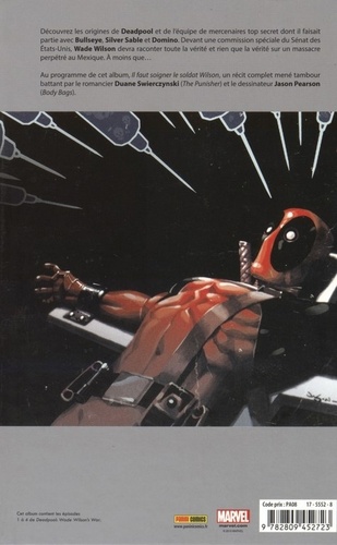 Découvrez les origines de Deadpool et de l'équipe de mercenaires top secret dont il faisait partie avec Bullseye, Silver Sable et Domino. Devant une commission spéciale du Sénat des Etats-Unis, Wade Wilson devra raconter toute la vérité et rien que la vérité sur un massacre perpétré au Mexique. A moins que... Au programme de cet album, Il faut soigner le soldat Wilson, un récit complet mené tambour battant par le romancier Duane Swierczynski (The Punisher) et le dessinateur Jason Pearson (Body Bags).