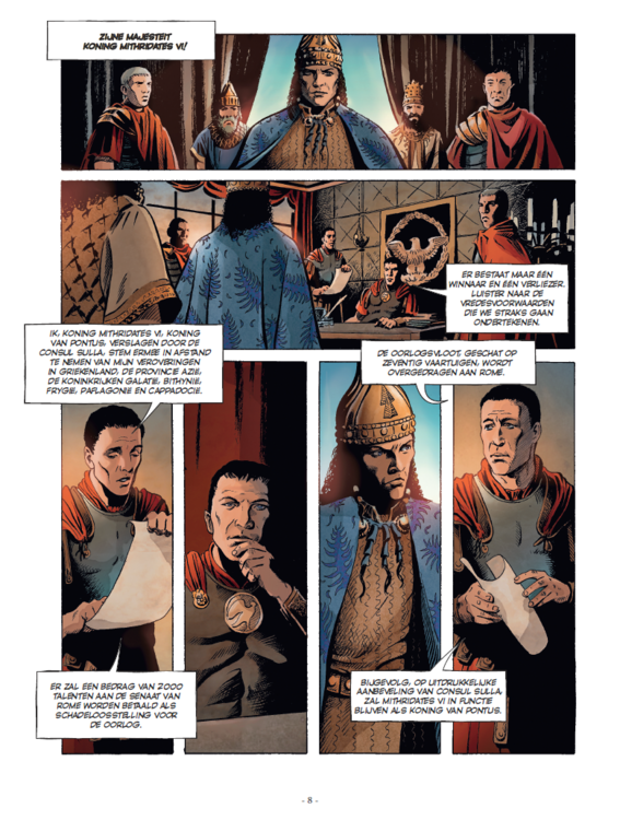 Griekenland, 85 v. Chr. Nadat hij de legers van de beroemde koning Mithridates VI heeft verslagen, eist de Romeinse consul Sulla iets bijzonders: diens persoonlijke arts Narcès. Als schepper van de gifgeneeskunde, zou die de basis hebben gelegd voor Mithridates' bijzondere weerstand. Sulla weet best welke persoonlijk prijs voor die kracht betaald moet worden. De Romeinse generaal heeft echter een zware terugreis naar Rome voor de boeg, niet alleen fysiek maar ook mentaal. Want hoe zal Rome reageren als een van de grootste veroveraars uit haar geschiedenis weer thuiskomt? Wat als het lot van de machtige Sulla een paar weken voor zijn triomfantelijke terugkeer naar de macht anders was uitgepakt? Op basis van die fascinerende hypothese dompelen LF Bollée en Régis Penet ons onder in de belevingswereld van een buitengewone man. Het levert een fraai beeld op van de gote Romeinse generaal en een diepgaande reflectie op macht en de zoektocht naar glorie.