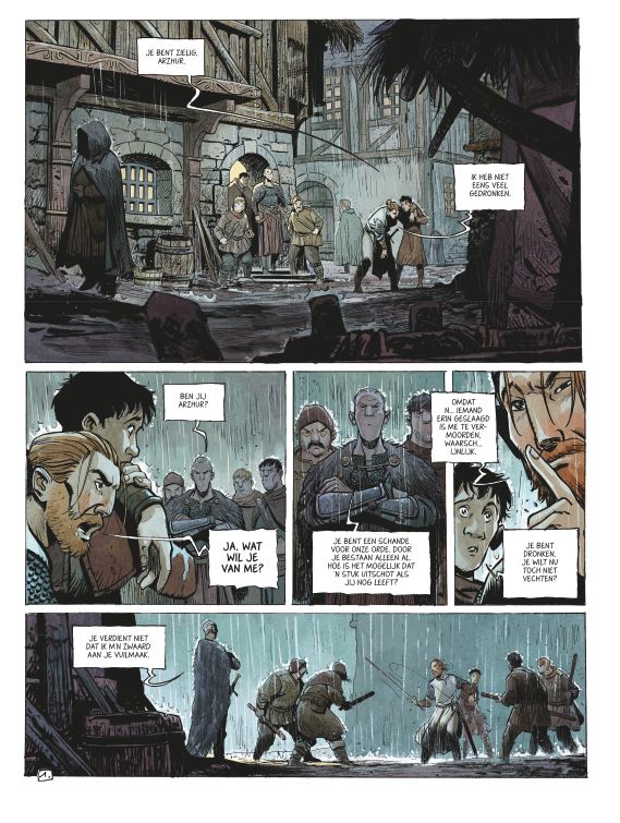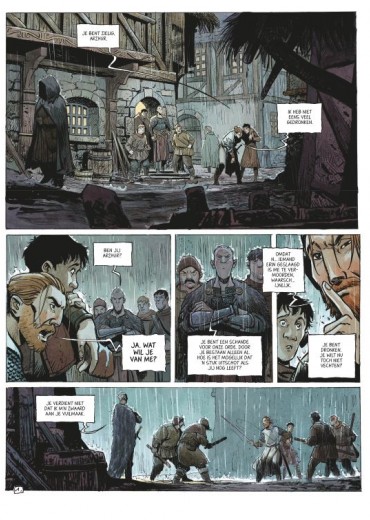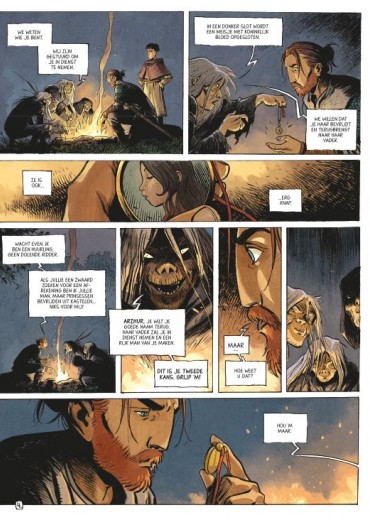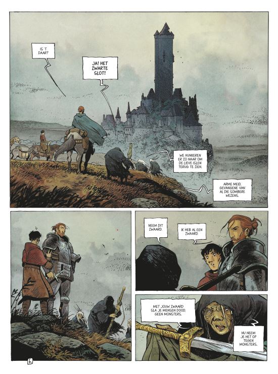 Score moyen 5 / 5Als liefde strijd wordt Ooit was Arzhur een alom gerespecteerde ridder, maar hij beging een misstap. Vandaag doolt hij half verzopen tussen herberg en slagveld. Zijn zwaard stelt hij ten dienste van wie hem betaalt. Op een dag benaderen drie oude vrouwtjes hem Ze overtuigen Arzhur om met hen mee te gaan naar een verlaten kasteel. Daar zit een prinses opgesloten, omringd door afgrijselijke monsters. Als hij de prinses redt en haar opnieuw verenigt met haar moeder zit er naast een beurs goud ook gegarandeerd eerherstel in. Dit kon het zoveelste banale sprookje geweest zijn, maar deze strip is geschreven door Hubert. De vorig jaar overleden inkleurder van onder andere Yoanns Robbedoes-albums, 40 Olifanten, Conan,... profileerde zich de laatste jaren steeds meer als een straffe scenarist. Niet alles werd vertaald, wegens net dat ene hoekje te veel af, maar het straffe Beeldschoon met het tekenaarsduo Kerascoët is wel richtinggevend in zijn werk. Ook deze In de Schaduwen is een topper. Zijn sprookje begint klassiek en onschuldig en ontpopt zich al snel tot een fantastische nachtmerrie. Innerlijke monsters vechten met echte beesten. Intimiteit vecht met publiek imago. Vrije wil met gelaten determinisme. De strijd is overal. De tekeningen worden verzorgd door die andere fantasytopper Vincent Mallié (Op Zoek naar de Tijdvogel - Voor de Zoektocht, De Grote Dode) en dat is een perfecte keuze. Mallié verstaat de kunst om het bovennatuurlijke als normaal te verkopen. Bovendien laat Hubert zijn tekenaar echt schitteren door hem voldoende ruimte te geven. Hierdoor word je continu overdonderd door prachtige prenten die elke tekst overbodig maken. Als dit de allerlaatste strip was die Hubert kon maken, is het een prachtig testament geworden. Een sprookje uit de duizend. Onze verwachtingen voor In De Schaduwen waren zeer hoog. Het is altijd geweldig als die volledig worden ingelost. Machtige strip. (ssz)
