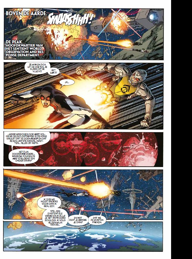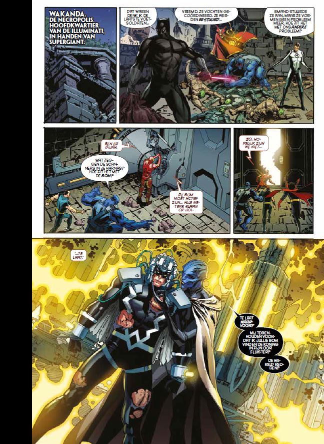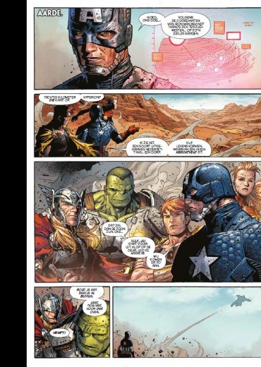 Compleet verhaal in 8 delen Om de wereld te redden van grotere gevaren, moeten de Avengers ook groter worden... Marvels grootste event nadert! Thanos maakt zijn wereldschokkende terugkeer en zijn legers vuren de openingsschoten af van een galactische oorlog die zowel op aarde als in de verre ruimte zal worden uitgevochten. Met onze helden gevangen tussen beide veldslagen! Terwijl Thanos' geheimen worden onthuld, valt de stad Attilan van de Inhumans en bevinden de Illuminati zich aan de frontlinie! En terwijl elke Origin-site op aarde actief wordt, betreden de Builders het Marvel-universum. Maar kunnen de Avengers op tijd terugkeren naar de aarde om haar te redden, wanneer verraad in de Galactic Council hen krijgsgevangenen heeft gemaakt? Galactische rijken zullen vallen als de gestoorde plannen van Thanos werkelijkheid worden!