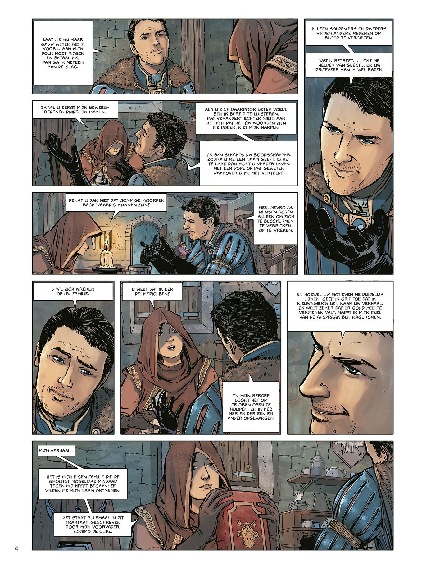 Knap historisch epos over een van de machtigste en meest invloedrijke families uit de Renaissance! - Slotdeel van deze historische reeks van de hand van Olivier Peru (Elfen, Brocéliande, Androïden) - Florence komt tot leven onder de tekenpen van Campanella Avdisha (Androïden) Een gewelddadig en passioneel fresco vol kunstgeschiedenis, oorlog, vriendschap, liefde en verraad: dit is de saga van de Medici. Hoewel de kinderen van Cosimo I Florence onder elkaar verdelen, kan alleen Francesco, de oudste, hertog worden. Nochtans is hij niet opgewassen tegen zo’n taak, in tegenstelling tot Isabella, zijn zus. Velen willen dat die briljante en vrijgevochten vrouw de toekomst van de Medici’s in handen neemt. Maar doordat ze de hele tijd in haar schaduw leven, haten haar broers haar. Hun jaloezie kan weleens een ommekeer betekenen in hun geschiedenis. Voor het eerst hebben de Medici’s geen vijanden, behalve zichzelf.