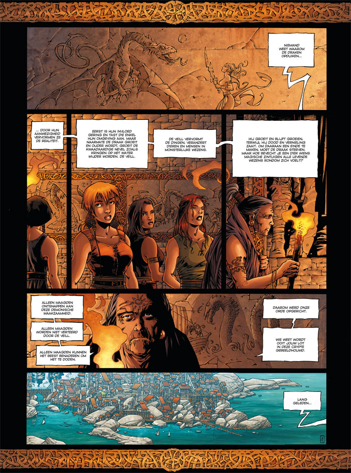 Niemand weet waarom de draken opduiken. Door hun aanwezigheid vervormen ze de realiteit, de mensen, de dieren. Naarmate de draak ouder wordt, groeit met hem de kwaadaardige nevel. De Veill. Alleen maagden kunnen die zonder gevaar betreden ... Alleen maagden kunnen het beest benaderen om het te doden. Daarom is de orde van de Drakenridders opgericht.