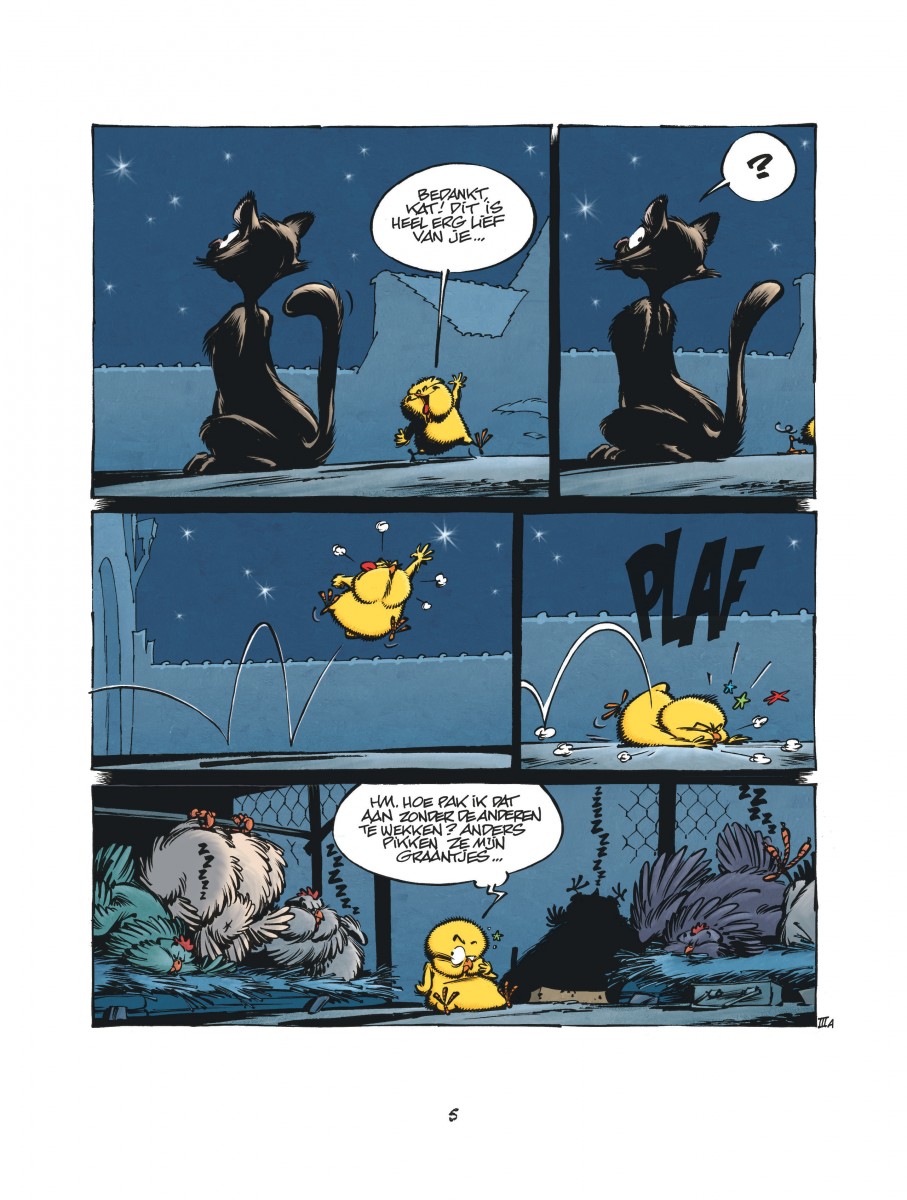 Mopperkont, onruststoker, naïef en erudiet tegelijk ... Over Kuiken I kun je veel zeggen, behalve dat het een kuiken zoals een ander is. Kuiken I is de filosoof van het kippenhok, die de wereld overschouwt in korte maar hilarische gags. Subliem getekend door Janry (De kleine Robbe). Gags en grappen bedacht door bestsellerauteur Eric-Emmanuel Schmitt.