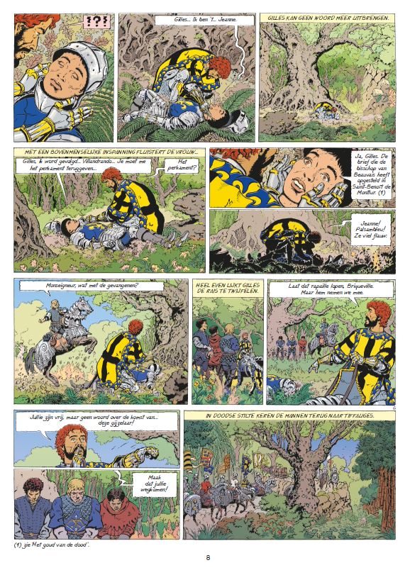 een nieuw verhaal getekend door Pleyers en geschreven door Néjib. Is de Maagd van Orléans erin geslaagd aan de Engelse brandstapel te ontsnappen? Terwijl hij een bende rovers verslaat die op zijn land rondzwerven, wordt Gilles de Rais verrast. Hun leider blijkt niemand minder dan Jeanne te zijn, de Maagd van Orléans... Hij besluit haar mee terug te nemen naar Tiffauges en haar onder de hoede van Tristan te stellen. Weer tot zichzelf gekomen, legt de jonge vrouw het doel van haar bezoek uit en vraagt Gilles het perkament te vernietigen dat hij na haar ‘dood’ heeft teruggevonden. Als het kasteel wordt aangevallen door de geduchte Rodrigue de Villandrando, vertrouwt Gilles de jonge vrouw en het perkament toe aan Tristan en maant hen aan te vluchten...