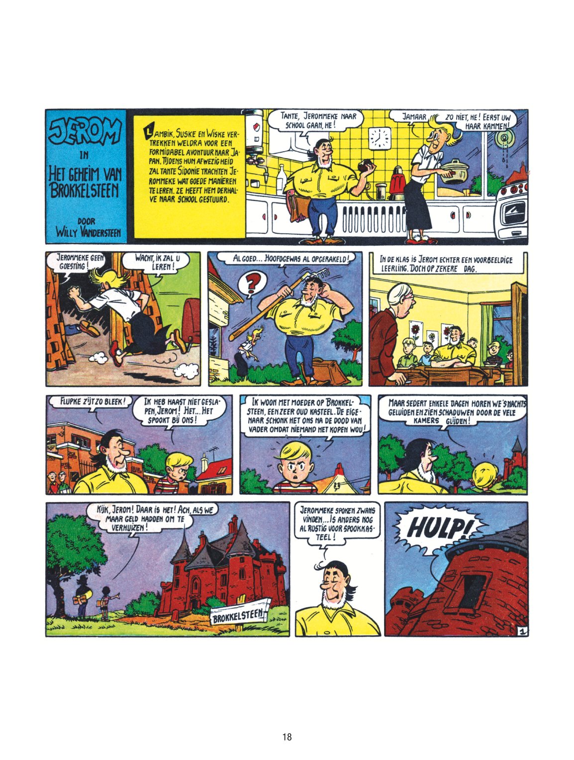 En 1960, Jerom, issu de Suske en Wiske, a lancé sa propre série qui a été prépubliée dans le magazine de bande dessinée Ons Volkske. Sept ans plus tard, il était déjà une des vedettes de la supplément de journal Pats et, grâce à une publication en Allemagne, le spin-off s'est développé en une vaste série de bandes dessinées flamandes. Après plusieurs relancements, où le rôle de Jerom a été réinterprété (comme super-héros, par exemple) et son entourage modifié, ses propres aventures ont continué jusqu'en 1991. Entre 2014 et 2016, Romano Molenaar et Bruno De Roover ont tenté de relancer Jerom comme super-héros dans cinq albums de J.Rom - Force of Gold. Luc Morjaeu a dessiné de nouvelles couvertures pour les deux intégrales.
