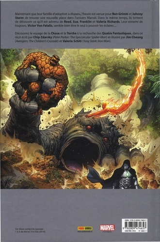 Maintenant que leur famille d'adoption a disparu, l'heure est venue pour Ben Grimm et Johnny Storm de trouver une nouvelle place dans l'univers Marvel. Dans le même temps, ils tentent de découvrir ce qu'il est advenu de Reed, Sue, Franklin et Valeria Richards. Leur ennemi de toujours, Victor Von Fatalis, semble bien être le seul à pouvoir les éclairer... Découvrez le voyage de la Chose et la Torche à la recherche des Quatre Fantastiques, dans ce récit écrit par Chip Zdarsky (Peter Parker : The Spectacular Spider-Man) et illustré par Jim Cheung (Avengers : The Children's Crusade) et Valerio Schiti (Tony Stark : Iron Man).