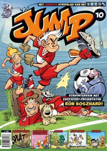 dit is alweer ons tiende nummer en dat vieren we met een Grijze Jager wedstrijd én een stripinterview met Zappsport-presentator Ron Boszhard. Verder vind je – naast alle vertrouwde strips – in deze Jump niet één, maar twee nieuwe strips! Allebei super grappig: Roel en zijn beestenboel van Gerrit de Jager en de voetbalstrip Pinanti United van onze eigen Jump-tekenaar Charel Cambré!