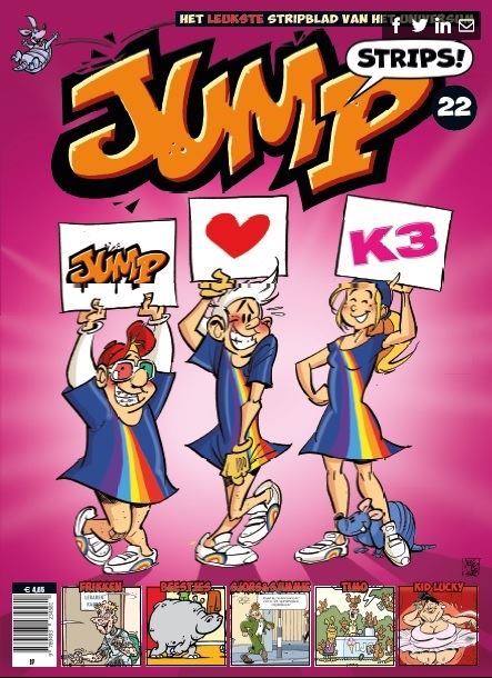 Lisa heeft dit nummer volledig overgenomen. Leesmonster Aron, Brains, Dweezil en hoofdredacteur Tim hebben er alles aan gedaan om ook mee te mogen doen. Hoe vreselijk dit voor ons jongens is verlopen lees je op de volgende pagina’s. Gelukkig hebben we de foto’s om het te bewijzen. Maar, eerlijk toegegeven: Lisa heeft woord gehouden door inderdaad K3 te strikken en ze heeft samen met hen iets heel moois van dit nummer gemaakt. Vooral de jurkjes van Brains en Dweezil vinden wij erg geslaagd! Dit en heel strips lees je in Jump – het leukste stripblad van het universum!