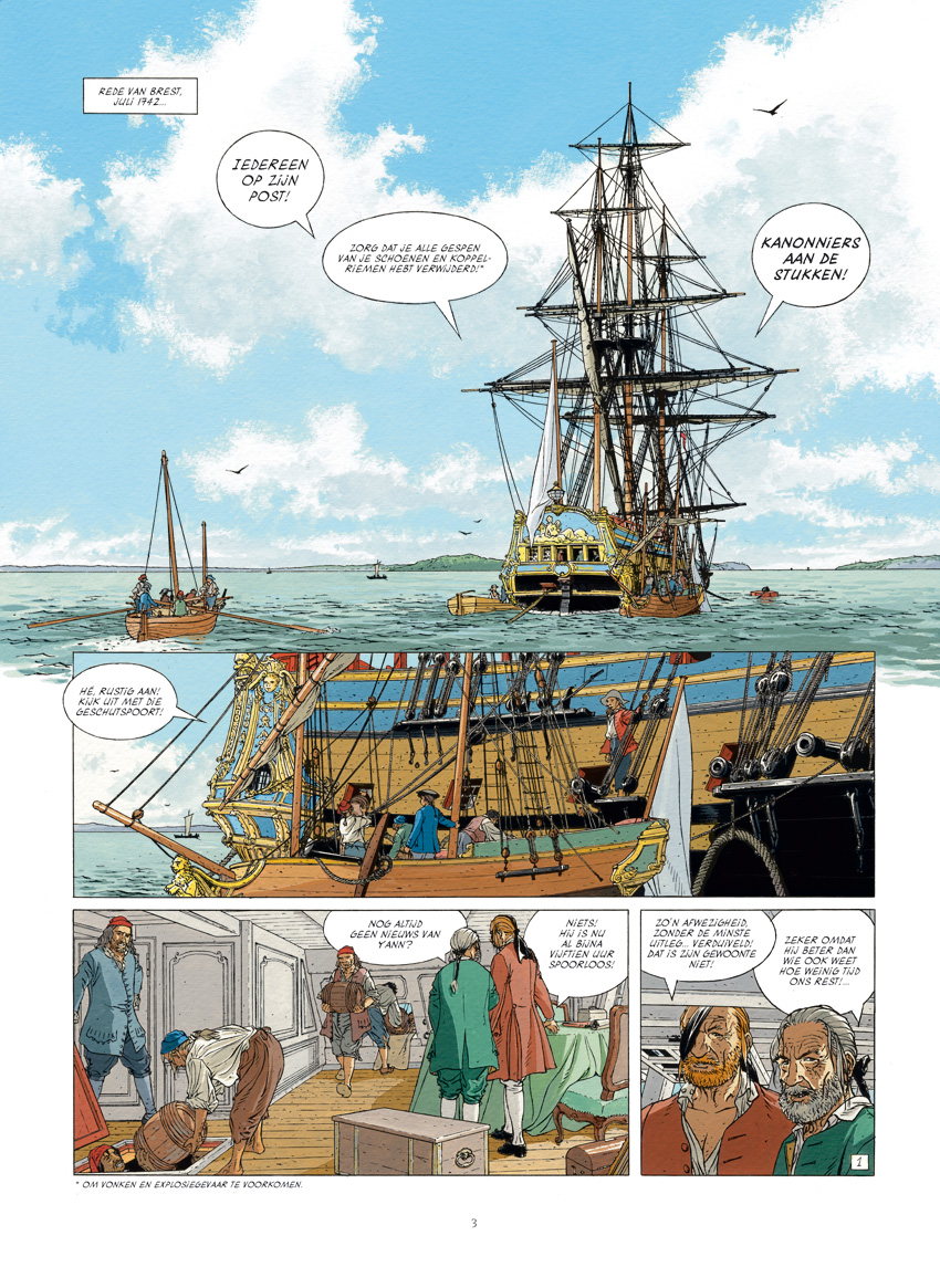 Striptekenaar Pellerin Patrice, kennen we ook nog van volgende stripreeksen waar hij enkele albums van tekende 1. Roodbaard 2. De Onthoofde Arenden 1742. Een spion slaagt erin om met zijn laatste adem een bericht over te brengen voor Lodewijk XV, de koning van Frankrijk. Het griezelige bericht zet een wedloop in gang. Hierin kan kaper Yann de Kermeur een hoofdrol spelen... als hij slaagt de gevaren die hem wachten het hoofd te bieden. Dit deel gaat verder waar deel 6 eindigde. Na uitgebreid onderzoek is tekenaar Patrice Pellerin klaar voor het volgende grote avontuur wat Yann de Kermeur te wachten staat. In opdracht van koning Lodewijk XV volgt Yann de Kermeur het spoor van een in Canada vermoorde spion. Zijn taak: een uitweg vinden uit de hoog oplopende spanningen tussen Engelsen, Fransen en Indianen. De koene zeevaarder is helemaal niet vertrouwd met dat verre, vreemde continent en zijn inwoners, maar de Franse kroongebieden zijn bedreigd, en de Engelsen vormen een te duchten vijand ... Na de slinkse intriges aan het hof van Versailles, en na tal van gevaren en bedreigingen waaraan hij ternauwernood wist te ontsnappen, kan Yann eindelijk uitvaren.