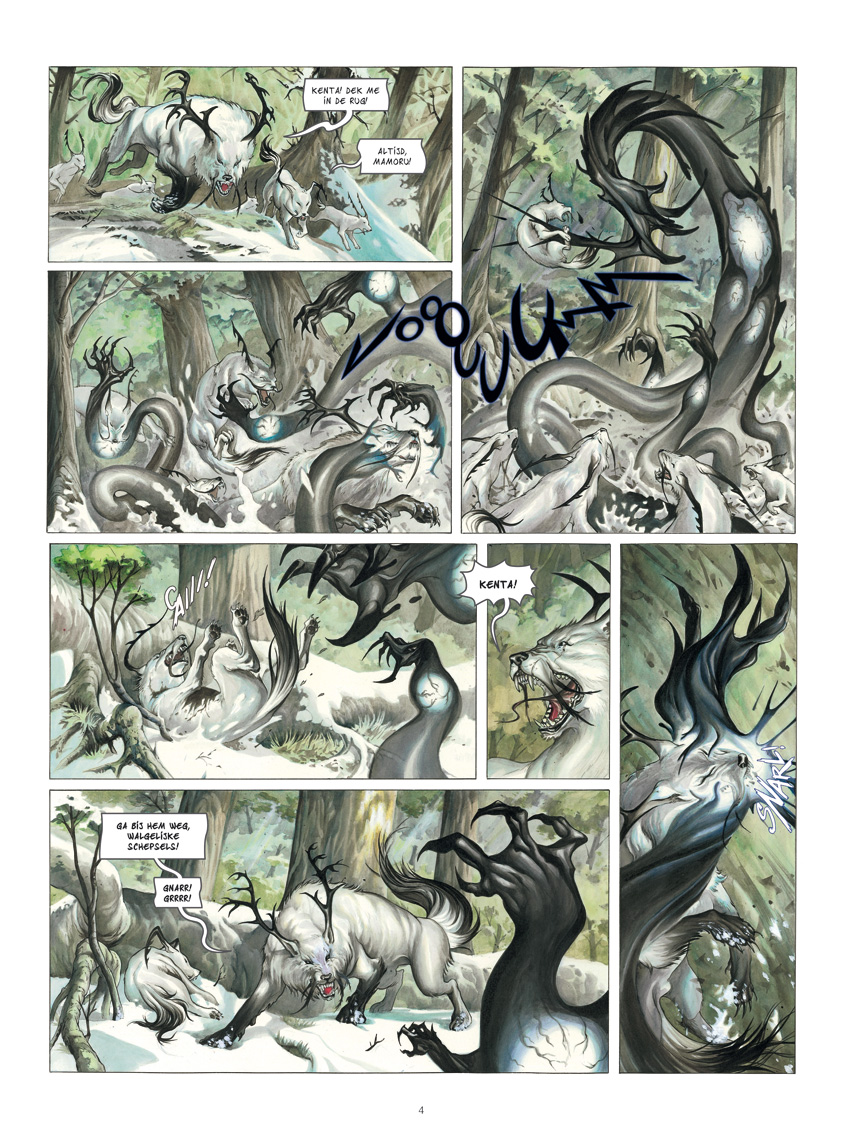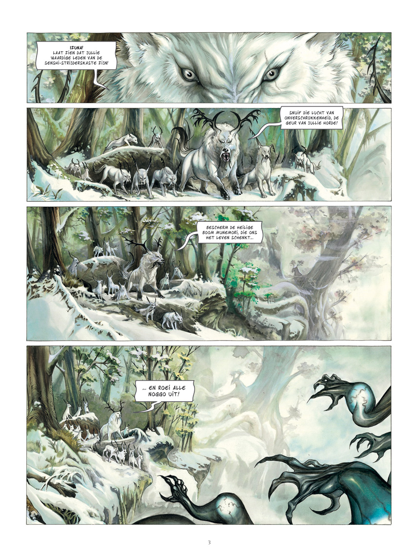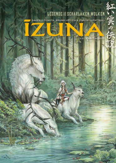 Al sinds de nacht der tijden zijn de Izuna-wolven de beschermers van de Heilige Boom. Woest verweren ze zich tegen de Noggo-demonen, om zo de onzichtbare grens te bewaken ­tussen de wereld der mensen en die van de geesten. De mysterieuze verschijning van een meisje binnen de horde dreigt dit broze evenwicht grondig te verstoren. Izuna vormt een nieuw tweeluik in het universum van De Legende van de Scharlaken Wolken, en vertelt het verhaal van de wolfachtige wezens waarmee we al kennismaakten in de eerste cyclus over deze mysterieuze Japanse fantasiewereld.