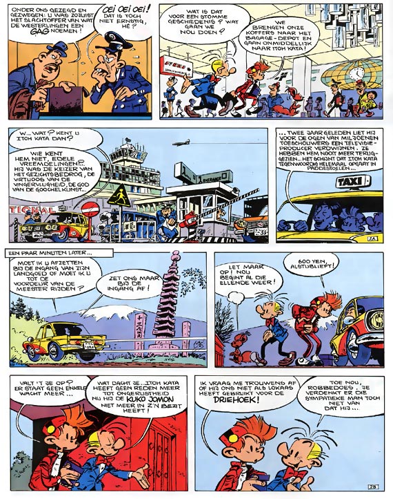 Itoh Kata heeft een paddestoel ontdekt die gebruikt kan worden als explosief. Robbedoes en Kwabbernoot begeleiden het potentiële wapen tot in Rommelgem. Robbedoes ziet er misschien nog steeds uit als de keurige piccolo in rood uniform die hij ooit was, maar zijn leven is nu wel heel wat avontuurlijker dan dat van een hotelhulpje. Samen met zijn onafscheidelijke vriend Kwabbernoot en Spip, de grappige eekhoorn, vecht Robbedoes overal ter wereld tegen misdadigers. En zijn tegenstanders zijn niet min: zo moet hij het opnemen tegen de verschrikkelijke geleerde Zorglub of de boosaardige piraat John Helena, tegen de Italiaanse maffia en Chinese gangsterbendes in New York of gaat hij in Palombië het geheim van een raadselachtig dier ontsluieren: de Marsupilami.