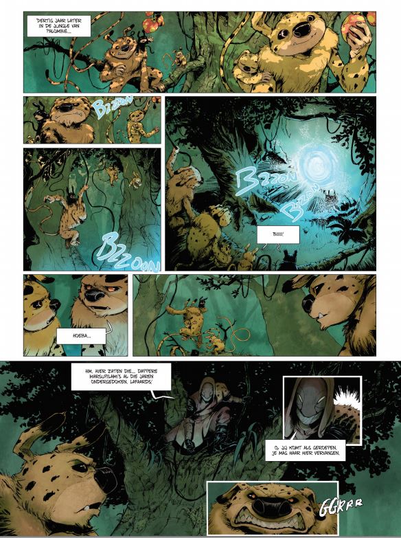 De Marsupilami, een legendarisch dier uit het hart van de jungle van Palombië, wordt in 1952 geboren uit de pen van André Franquin in een avontuur van Robbedoes en Kwabbernoot: Robbedoes en de erfgenamen. Al snel krijgt dit buitengewone personage een eigen reeks, getekend door Batem, en in 2012 verschijnt hij zelfs op het witte doek in Sur la piste du Marsupilami (‘In het spoor van de Marsupilami’). Vandaag brengt een nieuwe generatie stripauteurs een hommage aan het beroemde buideldier. Elf auteurs schilderen in zeven verhalen de verschillende facetten van de Marsupilami: Collin, Ducoudray, Garnier, Gijé, Goum, Hamon, Mobidic, Munuera, Tako, Vernay en Zabus.