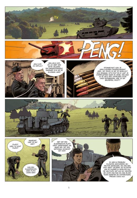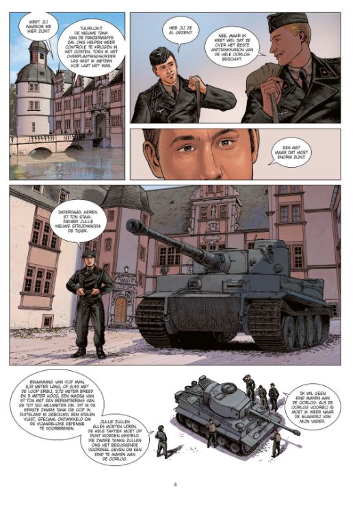 Striptekenaars Mavric, Andronik beiden uit Bosnië-Herzegovina kennen we ook van de delen 11 en 12 uit de reeks Man van het jaar stripscenarist Pecau kennen we van heel wat stripreeksen onder andere= • Arcana • De Verborgen Geschiedenis • Empire • Frontlinies • keltos • Machtspel • major Arcanum • > Nevada • Uur U Van alle wapens die de nazi-oorlogsindustrie ontwikkelde was de Panzerkampfwagen VI Tiger ongetwijfeld een van de meest beruchte bij de geallieerde troepen. Ontworpen om elke tank van het slagveld te vegen, werd de Tiger al snel een legende onder de tanks. In 1945 weten de rekruten op de Panzerschule in Paderborn, een van de bekendste Duitse tankscholen, het wel zeker: met dit wapen zullen ze het tij doen keren. Sommige van hun instructeurs zijn realistischer: de strijd is verloren. Voor de meest scherpzinnige onder hen, die de ogen niet kunnen afwenden van de gruweldaden van het nazisme, is het maar beter 'van de oorlog te genieten, want de vrede zal verschrikkelijk zijn'. In deze reeks wordt ieder deel een andere tank en oorlog belicht. Inclusief stofomslag en dossier met achtergrondinformatie.