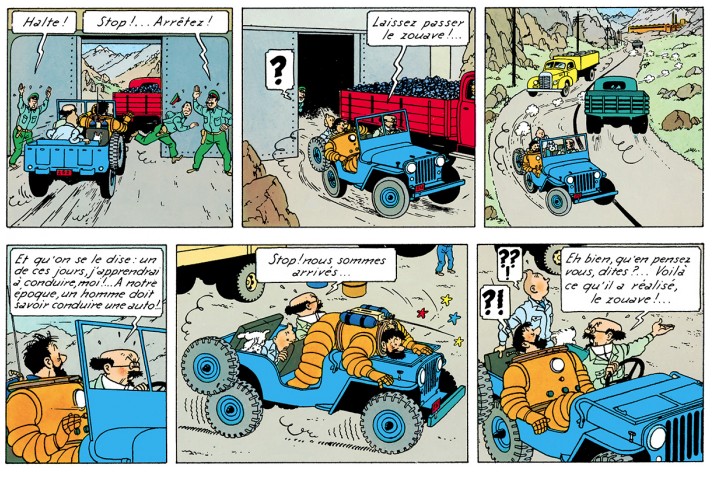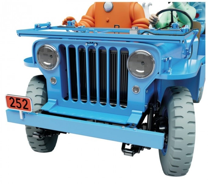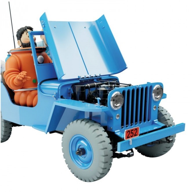 Cette jeep est un « second rôle » qui s’impose comme une vedette. Dans la première aventure lunaire de Tintin, elle n’apparaît qu’épisodiquement, mais la scène où le professeur Tournesol se laisse emporter — irrité, trop sûr de lui et sans permis de conduire — est devenue un moment d’anthologie de l’histoire de la bande dessinée. C’est précisément cette dynamique qui rend la jeep si mémorable : rapide, comique et littéralement « sur les chapeaux de roues ».