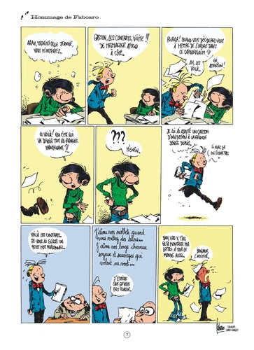 On ne présente plus Gaston, le plus célèbre gaffeur de toute l'histoire de la bande dessinée ! En 2017, cet anti héros débordant de malice et de créativité, créé par Franquin, a fêté ses soixante ans. Soixante ans d'émotions, de gags et d'inventions décalées auxquels la BPI du Centre Pompidou à Paris consacra une exposition durant plusieurs mois. A leur tour, de nombreux auteurs contemporains ont tenu à rendre hommage à cette irrésistible figure de l'humour et à son fameux pull-over vert en se la réappropriant et en lui donnant de nouveau vie à travers leurs dessins. Après l'univers de Spirou et de la BD franco-belge dans "La Galerie des illustres", c'est donc une "Galerie des gaffes" qui nous est offerte grâce à ce superbe album. Au fil des 48 planches, dont certaines sont inédites et d'autres ont été publiées dans le Journal Spirou depuis le début de l'année, c'est tout l'amour à l'égard de Gaston et de la bande dessinée que l'on retrouve avec un incomparable plaisir.