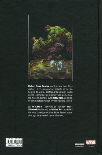 Hulk et Bruce Banner sont à présent deux êtres distincts. Cette conjoncture inédite permet au Colosse de Jade de profiter de la solitude, tandis que le scientifique peut enfin vivre pleinement son histoire d'amour avec Betty Ross. Combien de temps cette situation idyllique durera-t-elle ? Jason Aaron (Thor : God of Thunder), Marc Silvestri (Wolverine) et Whilce Portacio (The Uncanny X-Men) propulsent Bruce Banner et son alter ego dans un récit teinté d'horreur.
