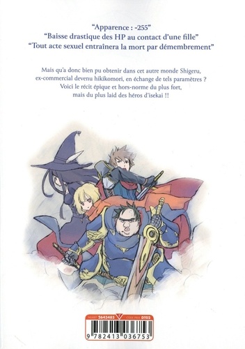 "Apparence : -255" "Baisse drastique des HP au contact d'une fille" "Tout acte sexuel entraînera la mort par démembrement" Mais qu'a donc bien pu obtenir dans cet autre monde Shigeru, ex-commercial devenu hikikomori, en échange de tels paramètres Voici le récit épique et hors-norme du plus fort, mais du plus laid des héros d'isekai !!