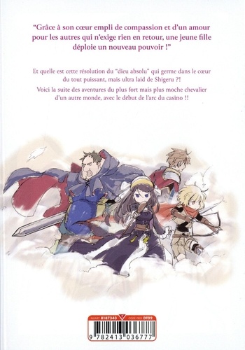 "Grâce à son coeur empli de compassion et d'un amour pour les autres qui n'exige rien en retour, une jeune fille déploie un nouveau pouvoir ! " Et quelle est cette résolution du "dieu absolu" qui germe dans le coeur du tout puissant, mais ultra laid de Shigeru ? ! Voici la suite des aventures du plus fort mais plus moche chevalier d'un autre monde, avec le début de l'arc du casino !!