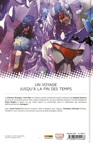 Le Docteur Strange et Iron Man ont effacé certains événements de la mémoire de Captain America et ne le lui ont jamais avoué. Mais, durant Original Sin, les plus infâmes trahisons ont été révélées et Steve Rogers a appris ce qui s'était passé. Le mensonge sera-t-il l'adversaire qui terrassera définitivement les Avengers ? Avec Leinil Francis Yu (Secret Invasion, New Avengers) aux crayons, Jonathan Hickman (Infinity, Fantastic Four) conclut ici le premier cycle de la série Avengers (2013).