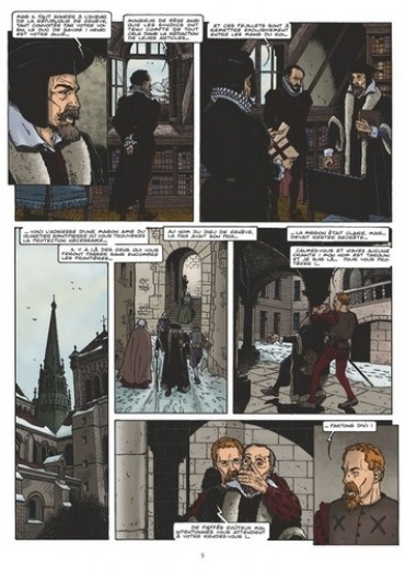 En ce début 1539, sous l'impulsion d'Henri IV, la paix entre Catholiques et Protestants a été instaurée en France. Mais cette paix est fragile. Le pasteur Crouzet, de la République de Genève, doit justement apporter au roi de précieux documents pour en établir les ultimes négociations. Traqué par les fanatiques de la Manus Dei, envoyés de Rome, va-t-il pouvoir accomplir sa périlleuse mission ? Et quel rôle vont jouer les mercenaires Gunther et Pritz, et leurs compagnons dans cette affaire ?Découvrez-le dans l'ultime tome de la grande saga Les Chemins de Malefosse ! Un classique de la collection Vécu mêlant à la perfection fiction et Histoire, transcendé par la maîtrise du vieux français de Daniel Bardet et le dessin réaliste de Brice Goepfert.