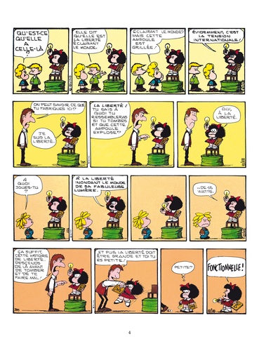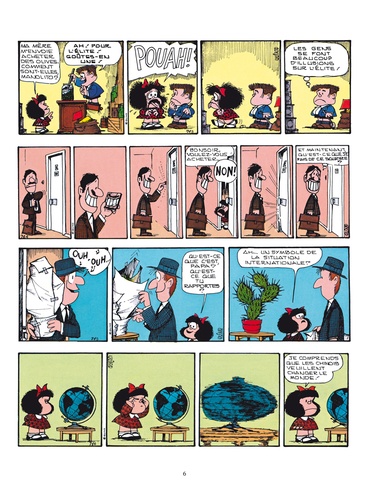 Mafalda, 46 ans, toutes ses dents et toujours aussi fraîche et impertinente ! On ne présente plus Mafalda, petite fille qui découvre la vie, ses joies, ses absurdités et ses horreurs. A travers l'éveil d'un enfant, Quino nous livre sa réflexion sur le monde et sur l'étrange animal qui le peuple : l'être humain. Quino donne naissance à Mafalda en 1964, personnage contestataire et anticonformiste de 10 ans, qui fera de lui un dessinateur mondialement reconnu. Les éditions Glénat poursuivent la réédition complète de cette série emblématique avec une nouvelle maquette sans aucun doute attrayante pour toutes les générations ! Petit bonus pour les inconditionnels, bibliophiles ou collectionneurs : une fois la série complète rééditée (janvier 2012), les tranches de tous les tomes rassemblés composeront un dessin décoiffant !