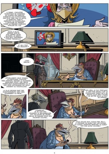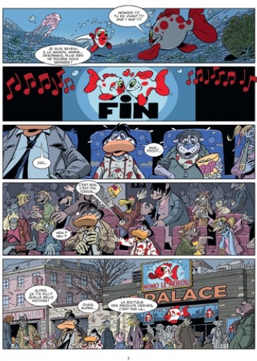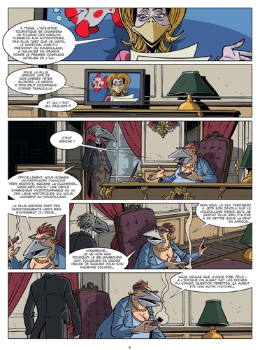 Au moment où débute cette histoire, Canardo a hérité d’une mission bien peu motivante : jouer les baby-sitter quelques semaines durant auprès de son petit neveu Marcel, pris de passion pour Momo le Mérou, un personnage de dessin animé et de jeu vidéo inspiré par le destin tragique d’une espèce en voie de disparition, le mérou à pois rouges. Bâillements... Mais il faut croire qu’on n’échappe pas à son destin : dans l’île tropicale de Koudoulia, terre d’élection du mérou à pois, on vient d’enlever l’épouse d’un baron de l’immobilier belgambourgeois, probablement otage d’un conflit opaque mêlant affairisme, corruption et politique. Et c’est Canardo qui est choisi par les autorités du Belgambourg pour tenter de solutionner, officieusement bien sûr, cette sale affaire aux implications diplomatiques potentiellement explosives… Et voici comment, toujours flanqué du petit Marcel et par 38° à l’ombre, le plus détonnant des détectives débarque séance tenante au Koudouland, le paradis du mérou à pois rouges... Action, ironie ravageuse et personnages hauts en couleurs : le Canardo nouveau est avancé. À savourer avec délectation...