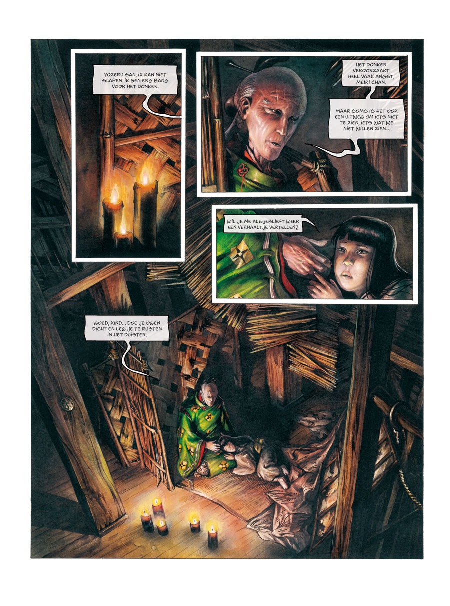 Deze saga vindt plaats onder de tekenen van de schoonheid en de tragedie, en is geschapen door Saverio Tenuta. In vier schitterende afleveringen volgen we de avonturen van Raido, de ronin zonder geheugen. Zijn avonturen spelen zich af in het historische universum van het oude Japan, met adembenemende landschappen en magische wezens uit de Japanse mythologie. De lezer wordt erdoor meegesleept in een vertelling die zowel afschuw als fascinatie opwerpt. Een liefdesverhaal en een horror story ineen... Deze dossier-editie bevat een kort verhaal, schetsen, ontwerpen, prenten en ander artwork.
