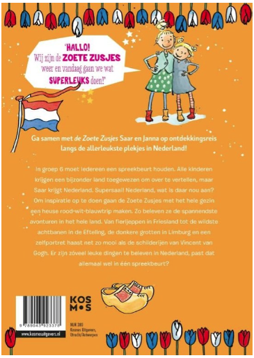 Saar est en CM1 et doit faire un exposé. Chaque enfant se voit attribuer un pays à présenter, mais Saar se voit attribuer les Pays-Bas. Super ennuyeux ! Les Douces Sœurs décident donc de partir en famille pour un véritable périple aux couleurs rouge, blanc et bleu. Ils vivront les aventures les plus excitantes à travers tout le pays : du fierljeppen en Frise aux montagnes russes les plus sauvages à l'Efteling, en passant par les grottes sombres du Limbourg et un autoportrait presque aussi beau que les peintures de Vincent van Gogh. Au cours de ce voyage, Saar et Janna découvrent que les Pays-Bas regorgent de lieux extraordinaires, si célèbres que des gens du monde entier viennent les visiter.