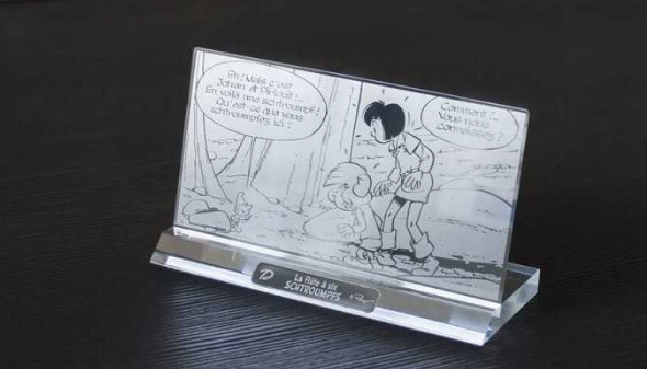 Cet objet est basé sur l'album « La Flûte aux Six Schtroumpfs » de la série Johan et Pirlouit, plus précisément la page 39.