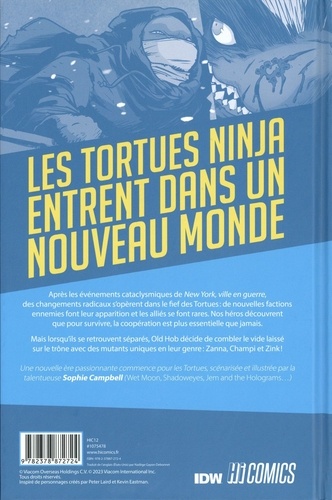 Bienvenue dans le nouveau monde des Tortues ninja ! Après les événements cataclysmiques de New York, ville en guerre, des changements radicaux s'opèrent dans le fief des Tortues : de nouvelles factions ennemies apparaissent, et les alliés se font rares. Nos héros découvrent que pour survivre, la coopération est plus essentielle que jamais, mais lorsqu'ils se retrouvent séparés, Old Hob décide de combler le vide du pouvoir avec des mutants uniques en leur genre : Zanna, Champi et Zink ! Une nouvelle ère passionnante commence pour les Tortues, scénarisée et illustrée par la talentueuse Sophie Campbell (Wet Moon, Shadoweyes, Jem and the Holograms...). " Les Tortues ninja entrent dans une nouvelle ère mais restent au sommet... On aurait bien du mal à trouver un comics actuel mieux conçu que celui-ci. " ComicBook. com " Campbell offre une narration visuelle de premier ordre. Ses dessins font littéralement partie des meilleurs parmi les publications du moment. " Word of the Nerd Online