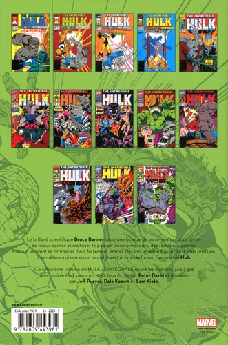 La prodigieuse prestation de Peter David se poursuit dans cet album exceptionnel. Au sommaire, treize épisodes jamais publiés en France ! Sous son apparence grise, Hulk va devoir affronter l'Abomination, les Quatre Fantastiques, le Leader, la Freedom Force... ainsi que lui-même ! Avec en invité d'honneur : les Défenseurs.