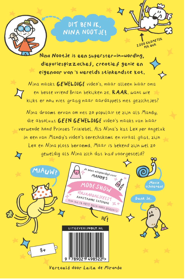Nina Nootje est une superstar en devenir, cheffe de pizzas surgelées, génie créatif et propriétaire du chat le plus puant du monde. Elle crée des vidéos géniales, mais seules sa mamie et son meilleur ami Brian les regardent. Bizarre, non ? Qui n’aime pas des patates avec des visages rigolos ?