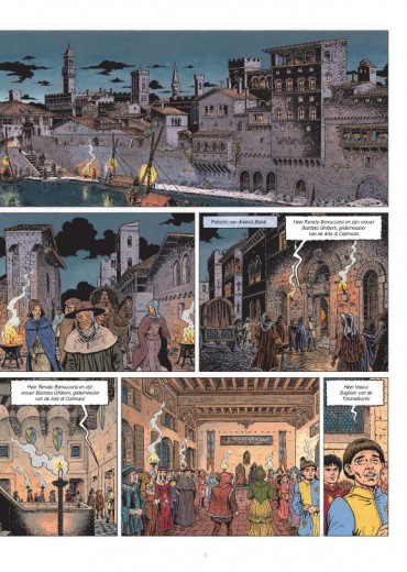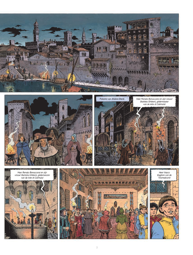 Vasco is terug in Italië. Zijn oom geeft hem een bijzondere opdracht: hij moet bij een grote schilder over de aankoop van een van zijn doeken onderhandelen. Maar dan wordt de schilder vermoord. Vasco komt in het middelpunt van de verdenkingen te staan in een onderzoek vol verrassende wendingen. Slot van een tweeluik: ontknoping van de zoektocht naar de moordenaar van meester Fiorentino. Historische avonturenreeks waarin de veertiende-eeuwse bankier Vasco de wereld rondreist. Bedacht door wijlen Gilles Chaillet (Lefranc, Alex) en met veel respect verdergezet door Dominique Rousseau (Condor, De laatste profetie).