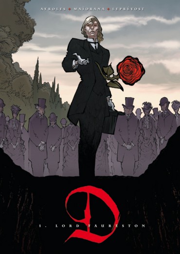 Terugkerend van een van zijn expedities bezoekt ontdekkingsreiziger Richard Drake de clubs en balzalen in de hogere Victoriaanse kringen. Hij wordt verliefd op miss Catherine Lacombe, een charmante lady met een onbuigzaam karakter. De verleidelijke lord Faurestone heeft ook zijn oog laten vallen op deze jonge vrouw. Maar een zweem van geheimzinnigheid omringt deze duistere dandy. Is Catherine soms in gevaar? Dat is althans wat de raadselachtige Mr Jones beweert, een obscure bankmedewerker die '’s nachts een vampierjager wordt! D is een vampieren-drieluik van Alain Ayroles en Bruno Maïorana, coauteurs van Garulfo.