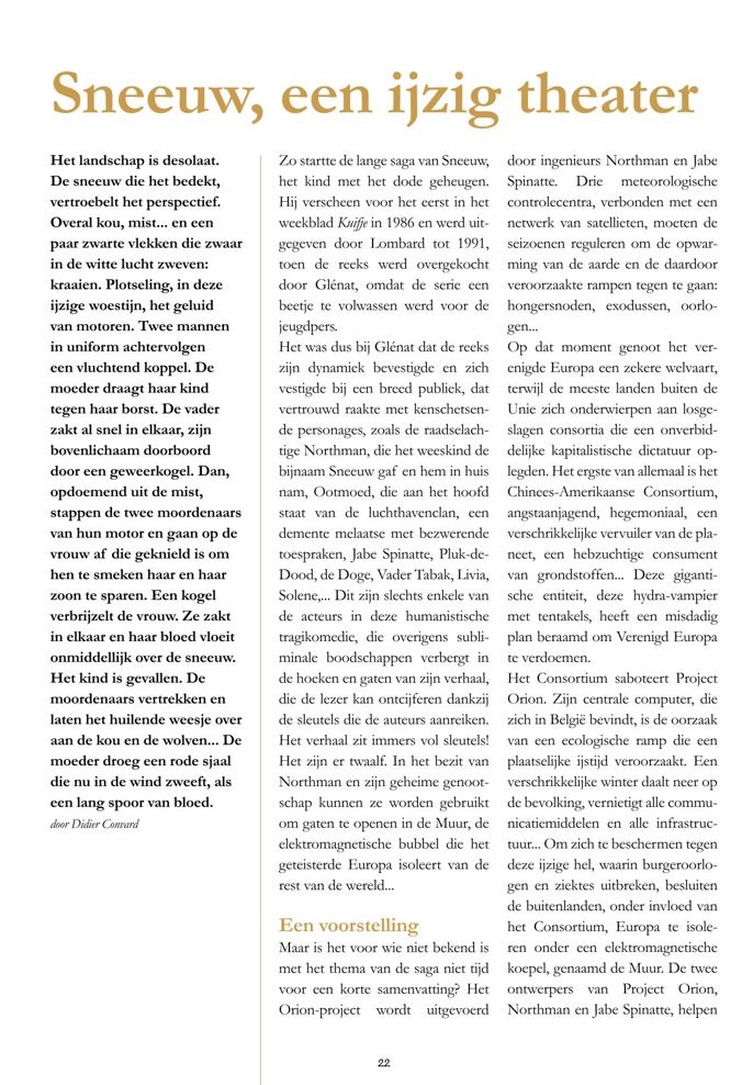 En mars, avril et mai, les éditions Saga publient l'intégrale de la série "Neige" de Christian Gine et Didier Convard, répartie en trois volumes de 264 pages chacun. Cette édition comprend également les tomes 14 et 15, jamais traduits auparavant par Glénat via le groupe Standaard Uitgeverij. Chaque volume intégral propose des pages bonus contenant des dossiers. La majorité des pages supplémentaires du premier volume intégral comprend trois courtes histoires et un gag, jamais publiés en album, tous issus du journal Tintin et Super Tintin où cette série post-apocalyptique a été présentée pour la première fois.