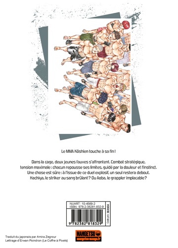 Le MMA Kôshien touche à sa fin ! Dans la cage, deux jeunes fauves s'affrontent. Combat stratégique, tension maximale : chacun repousse ses limites, guidé par la douleur et l'instinct. Une chose est sûre : à l'issue de ce duel explosif, un seul restera debout. Hachiya, le striker au sang brûlant ? Ou Aoba, le grappler implacable ?