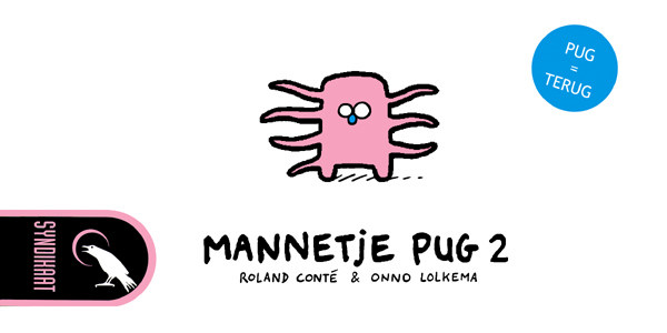 Onno Lolkema en Roland Conté experimenteren met Mannetje Pug 2 verder dan ooit. Een fotostrip, een Pugspel en nog veel meer. Flauwe humor van de bovenste plank!
