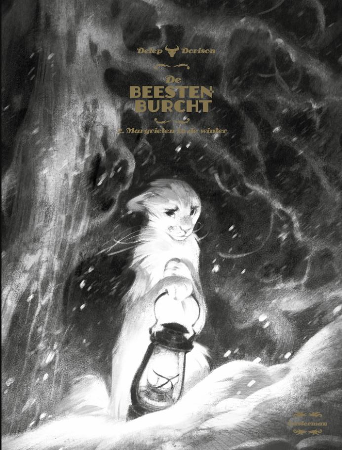 Slechts 3 in voorraad. Verzet door geweldloosheid. De winter houdt de burcht in haar greep. Het weer spaart de inwoners niet, en ondertussen blijft president Silvio angst zaaien… Maar de strijd van Miss B en haar vrienden, César het konijn en Azelar de rat, is nog niet gestreden. Hun beweging, ‘de Margrieten’, blijft ijveren voor een beter leven: ze zeggen nee tegen de verplichting een halsband met belletjes te dragen en eisen gratis hout voor alle dieren. Om hun stem te laten horen, trotseren de moedige gezellen elke nacht de koude om een sit-in te houden voor de ramen van Silvio. Maar Miss B gelooft dat de dictatuur alleen verslagen kan worden als ze niet toegeven aan de verleiding van het geweld. Slaagt ze erin haar vrienden te overtuigen van geweldloos verzet? Het belooft een hele uitdaging te worden… Beestenburcht de revelatie voor 2020. Een dierenstrip, ja maar niet zomaar een dierenstrip. Een strip gebaseerd op het thema “geweldloos verzet “ die Dorisson terug vond bij Ghandi, Srdja Popovic ( de man die aan de basis lag van de val van Milosevic) en het boek “ La Désobeissance Civile “ van H.D.Thoreau uit 1849. Uiteraard is een vergelijk met de Boerderij der dieren van George Orwell, niet ver weg en is de inspiratie daar ontstaan. Toch wil de strip de frustratie van dit boek verwerken, namelijk “een revolutie die is geboren met goede gevoelens en geweld eindigt meestal door een dictatuur erger dan degene die ze wilde bestrijden”. Door dieren te gebruiken in dit verhaal, die een universele draagkracht hebben, kunnen zware en vreselijke gebeurtenissen verteld worden met een vleugje humor. Het verhaal gaat dus vooral over de leven onder een dictatuur, in dit geval “Silvio” de stier die over het kasteel heerst samen met zijn waakhonden en zwijnen. Alle thema’s ( Corruptie, wraak, opstand, onrecht, geweld, frustratie,…) komen hier aan bod op een bijzonder originele manier en vooral door zeer charmante personages zoals bv Miss Bengalore de kat. U leest het al, niet zomaar een strip, Dorisson wil de lezer vooral attent maken dat geweld, zelfs uitgelokt, een slechte raadgever is en meestal leidt tot meer geweld. Niet moraliserend doch steeds reflecterend naar een goede democratie en een beschermende, sociale maatschappij laat Dorisson de lezer nadenken over onze samenleving en hoe het er in de wereld aan toe gaat. Tekenaar Felix Delep levert hier zijn debuut én wat voor één. Dorisson vroeg aan Casterman om een tekenaar in de stijl van Milt Kahl en een vriend zei hem om eens een kijkje te nemen op de site van Felix en daar was de keuze vlug gemaakt. WAT EEN TALENT! Zijn tekenstijl is bijzonder vloeiend, met zin voor detail, warm en doet soms denken aan Guarnido. Felix is 25 jaar en ondertussen reeds gestart aan deel 2. Deel 1 nam wat meer tijd in beslag door het zoeken naar de juiste manier van tekenen. Het verhaal zal uit 4 delen bestaan en is reeds volledig geschreven. Een strip die uiterst doordacht en origineel is, zeker een topper in wording. Verschijnt in Hardcover en softcover (72 blz.). Hardcover schrijf je best in op voorhand want deze zal terug direct uitverkocht zijn. Ergens in Frankrijk tussen de twee wereldoorlogen, genesteld in het hart van een boerderij vergeten door mensen, wordt het dierenkasteel geleid door een ijzeren schoen door president Silvio ... gedetacheerd door een hondenmilitie, de dictator stier exploiteert de andere dieren, allemaal gedwongen om uitputtende inspanningen te leveren voor het welzijn van de gemeenschap ... Miss Bangalore, angstige kat die alleen probeert haar twee kleintjes te beschermen, en Caesar, een konijn gigolo, gaan samenspannen met de wijze en mysterieuze Azelar, een brilrat om weerstand tegen onrecht te bepleiten, strijd tegen hoektanden en klauwen door ongehoorzaamheid en gelach ... Eerste deel van een serie gepland in vier delen, De Animal Castle bezoekt de Farm Animals van George Orwell (1945) opnieuw en nodigt ons uit voor een veelheid aan reflecties, soms zeer actueel ...