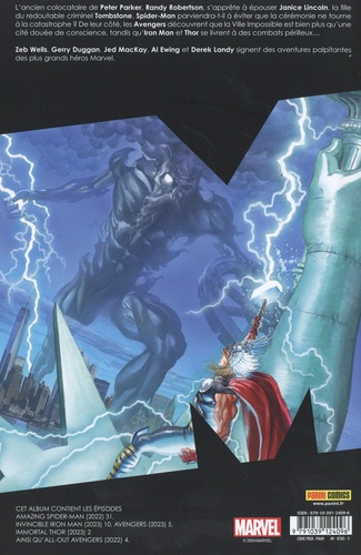 Il y a du mariage dans l'air dans l'univers de Spider-Man, Peter Parker est témoin et Tombstone est le père du marié ! La recette d'un désastre ? Les Avengers affrontent le Cartel Livide, Thor se retrouve face à un autre Dieu du Tonnerre et Iron Man... se marie ? Décidément, c'est le printemps, Cupidon est de sortie ! Au fait ! Qui manipule les Avengers qui doivent affronter des menaces de plus en plus improbables ? Hasard du calendrier, ce n'est pas un mais deux mariages que les lecteurs de MARVEL COMICS célèbreront ce mois-ci ! La formidable nouvelle série Immortal Thor d'Al Ewing se poursuit, ainsi que la saga des Avengers où les héros font alliance avec Kang, le vilain d'Ant-Man 3 et de la série Loki !