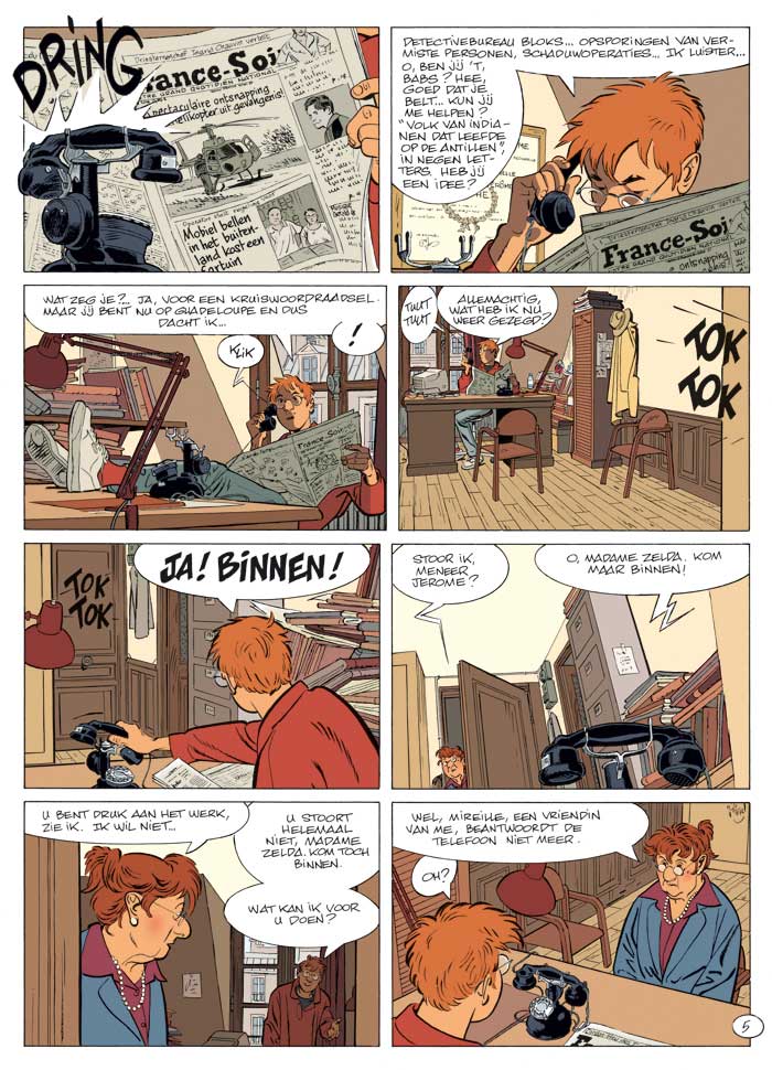 Een dame op leeftijd valt van de trap en Jerome wil helpen. Even later wordt onze galante privédetective bij een indrukwekkende politie-actie in de boeien geslagen en gearresteerd. De politie is op zoek naar een gangster die, met de hulp van een jongeman, op spectaculaire manier met een helikopter is ontsnapt uit de gevangenis. Gangster Mathias en jongeman blijken zoon en kleinzoon te zijn van het dametje dat van de trap viel. Het zal je maar overkomen. Nóg gecompliceerder is het als Jerome wordt ontvoerd door een ex-kompaan van de ontsnapte gangster. Hij is ervan overtuigd dat Jerome de helpende zoon is die weet waar de buit werd verstopt van enkele bankovervallen. En die zoon ... zou ook zijn vader hebben vermoord. Jerome Bloks zit tot over zijn oren in de ellende en dus kan hij maar net zo goed de zaak oplossen ...