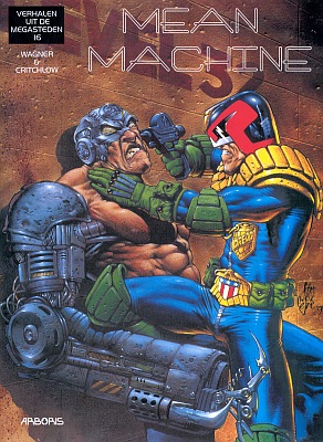Mean machine is een van de leden van de beruchte Angelbende, die de vervloekte aarde onveilig maakt, het verlaten en radioactieve gebied in de buurt van Mega City 1. Door middel van een schijf op zijn hoofd kan hij zijn agressiviteitniveau instellen, van 'nors' via 'vals' en 'gemeen' naar 'grof'! Als blijkt dat hij vader is komt hij evenwel voor problemen te staan die hij zelfs met zijn schijf niet op kan lossen!