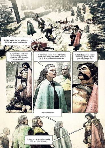 Striptekenaar Fafner (°192) tekende al wat delen in de reeksen UUR U, Man van het jaar en Carthago Adventures maar enkel deze laatste is vertaald werk van hem. Gloednieuwe reeks van Jean-Pierre Pécau (Jeremiah Johnson) met tekeningen van Fafner • De spion van Caesar is een brok spieren, een Gallische Conan die voor niets terugdeinst om wraak te nemen op de moordenaars van zijn vrouw en zoon • Gelimiteerde hardcovereditie! (zoals gewoonlijk geen pre order nodig meer dan voldoende voorraad) Coax, voormalig gladiator en slaaf, rouwt om zijn vrouw en zijn zoon, die op gruwelijke wijze zijn geofferd tijdens een ceremonie die zelfs door de onverschilligste Romeinen wordt veroordeeld. Coax heeft gezworen wraak te nemen, maar op wie? En hoe? Hij heeft geen macht, hij is niets. Dan ontmoet hij pontifex maximus Julius Caesar en verbindt zijn lot met dat van Caesar: hij wordt de spion van de hogepriester om zo zijn wraak te voltrekken… Als een generaal zijn triomf in Rome vierde, wilde de Romeinse traditie dat er een slaaf achter hem stond en hem influisterde: ‘Vergeet niet dat je sterfelijk bent’ (Memento mori). Bij de triomftocht van Caesar was het geen slaaf die achter hem stond, maar zijn spion. De spion van Caesar.